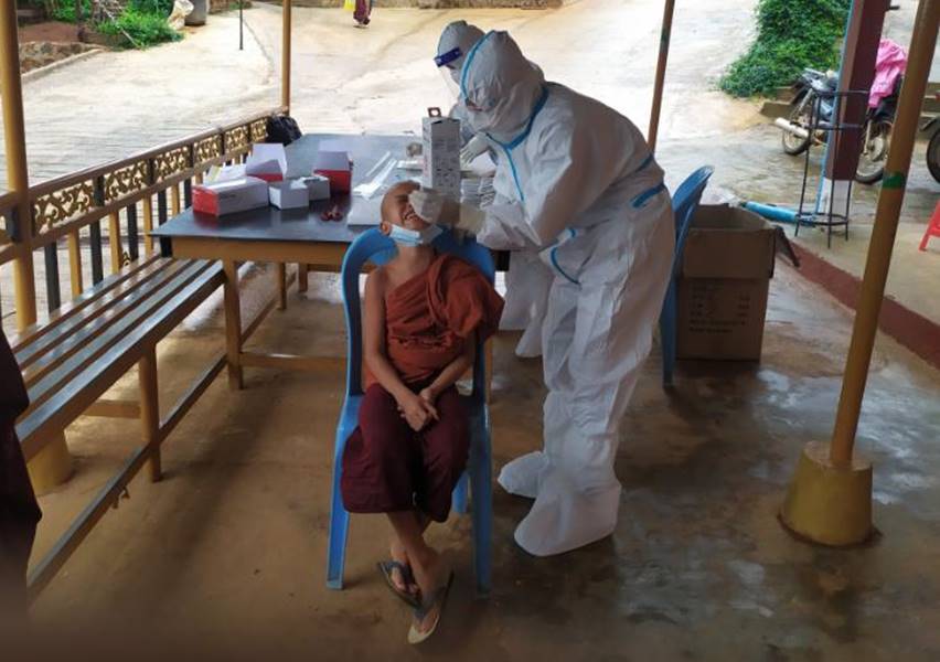 ထို့အပြင် ရှမ်းပြည်နယ်(မြောက်ပိုင်း)၊ လားရှိုးမြို့ရှိ အောင်ချမ်းသာကျောင်း တိုက်၊ အောင်မြဘုံစံ ထင်းရှူးတောင်ကျောင်း၊ မဏိဇောတကျောင်းတိုက်၊ သာသနာ့ရံ သီကျောင်းတိုက်၊ မဟာမြိုင်တောရ ကျောင်းတိုက်နှင့် အောင်သိဒ္ဓိကိုးတောင်ပြည့် ကျောင်းတိုက်များရှိ သံဃာတော်များနှင့် သာသနာနွယ်ဝင် သီလရှင်များအားအရှေ့ မြောက်တိုင်းစစ်ဌာနချုပ်၊ နယ်မြေခံဆေးအဖွဲ့များက မြို့နယ်ကျန်းမာရေးဦးစီးဌာန ကျန်းမာရေးဝန်ထမ်းများနှင့် ပူးပေါင်း၍ ကိုဗစ်-၁၉ ရောဂါပိုး ရှိ/မရှိ စစ်ဆေး ပေးခြင်းများ ဆောင်ရွက်ပေးခဲ့ကြောင်း သတင်းရရှိသည်။