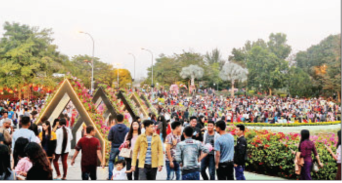 နေပြည်တော် ရေပန်းဥယျာဉ်ပန်းပွဲတော်သို့ လာရောက်လည်ပတ်သူများဖြင့် စည်ကား