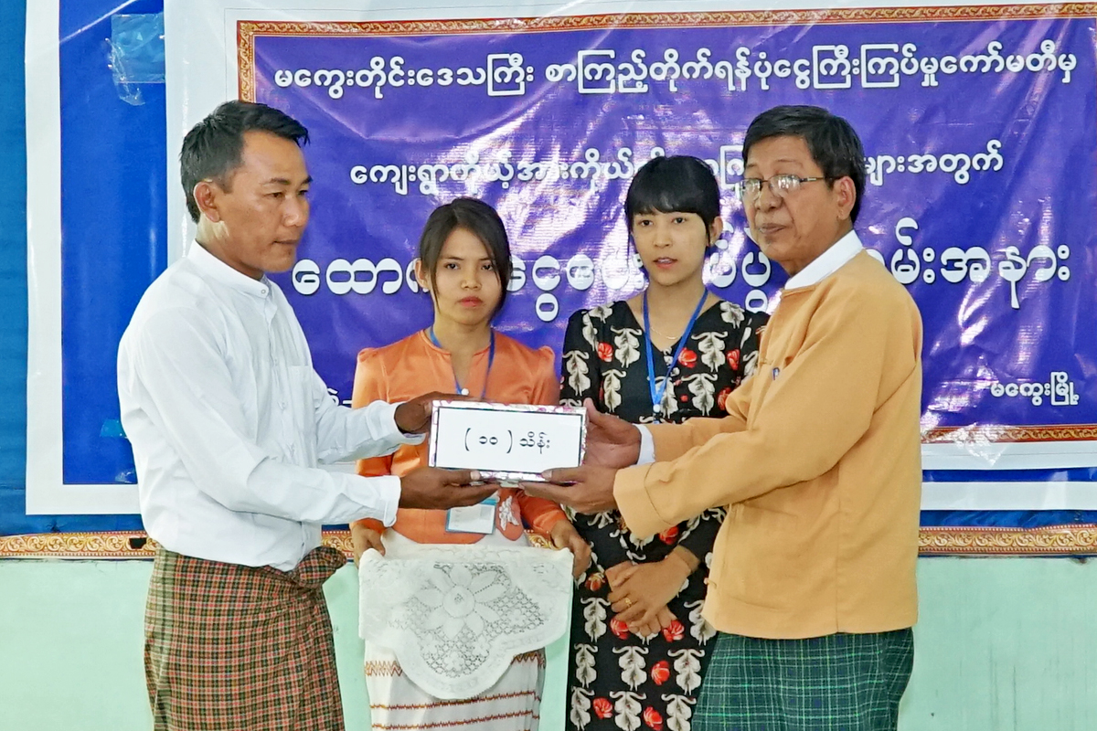 မကွေးတိုင်းဒေသကြီးအစိုးရအဖွဲ့ လူဝင်မှုကြီးကြပ်ရေးနှင့်လူ့စွမ်းအားအရင်းအမြစ်ဝန်ကြီး ဦးမြင့်အောင် ကျေးရွာစာကြည့်တိုက်များသို့ အလှူငွေနှင့် စာအုပ်စာစောင်များပေးအပ်ခြင်းအခမ်းအနားသို့ တက်ရောက်