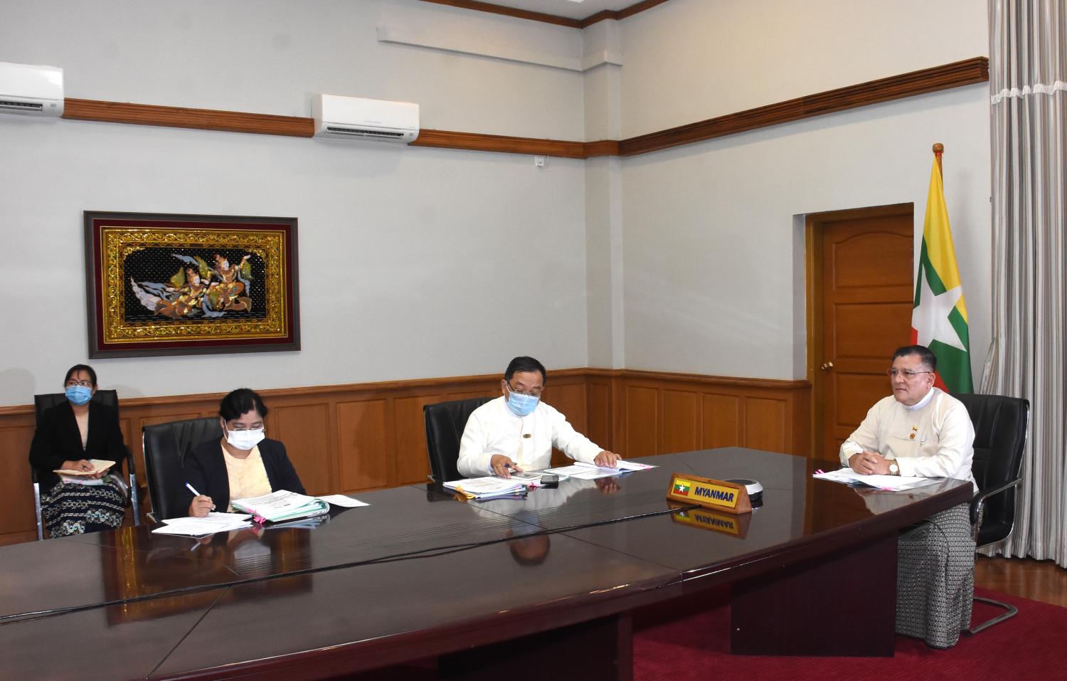 အာဆီယံစီးပွားရေးဝန်ကြီးများနှင့် အာဆီယံစီးပွားရေး အကြံပေးကောင်စီတို့၏ တွေ့ဆုံပွဲကို ယနေ့မွန်းလွဲပိုင်းက ရင်းနှီးမြှုပ်နှံမှုနှင့် နိုင်ငံခြားစီးပွား ဆက်သွယ်ရေးဝန်ကြီးဌာန အစည်းအဝေးခန်းမမှ Video Conferencing စနစ်ဖြင့် ကျင်းပသည်။
