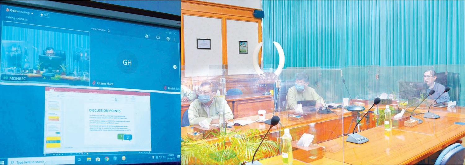 အစည်းအဝေးသို့ သစ်တောဦးစီးဌာန ညွှန်ကြားရေး မှူးချုပ် ဒေါက်တာညီညီကျော်နှင့် တာဝန်ရှိ အရာ ထမ်းများ တက်ရောက်ခဲ့ပြီး OneMap Myanmar စီမံကိန်းမှ CTA Dr. Henri Rueff ၊ Land Core Group မှ Executive Director ဦးရွှေသိန်းနှင့် OneMap Myanmar စီမံကိန်းမှ တာဝန်ရှိသူများက Vedio Conferencing ဖြင့် တက်ရောက် ဆွေးနွေးခဲ့ကြကြောင်း သိရသည်။