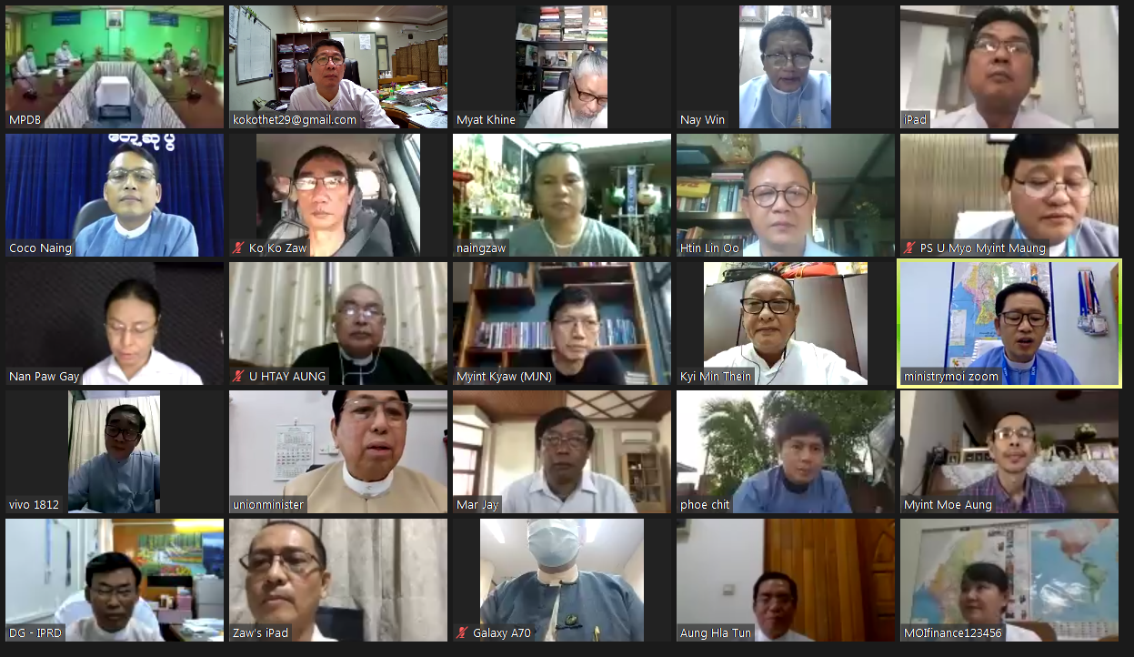 အွန်လိုင်းအစည်းအဝေးသို့ ပြန်ကြားရေးဝန်ကြီးဌာန ပြည်ထောင်စုဝန်ကြီး ဒေါက်တာဖေမြင့်၊ ဒုတိယဝန်ကြီး ဦးအောင်လှထွန်း၊ အမြဲတမ်းအတွင်းဝန် ဦးမျိုးမြင့်မောင်နှင့် ဌာနဆိုင်ရာ အကြီးအကဲများ၊ စာပေနယ်ပယ်မှ ကိုယ်စားလှယ် ဦးထင်လင်းဦး၊ သတင်းမီဒီယာနယ်ပယ်မှ ဦးကျော်စွာမင်း၊ ဦးမြတ်ခိုင်၊ ဦးချစ်ဝင်းမောင်၊ ဦးဝဏ္ဏ (မာဂျေ) ၊ ဦးမြင့်ကျော်၊ ဦးနိုင်မင်းဝေ၊ ဒေါ်နန်း ဖော့ဂေ၊ ဒေါ်မေရီငြိမ်းချမ်း၊ ဒေါ်တင်ဇာ၊ ဦးဌေးအောင်၊ ဦးခွန်စိုင်းအောင်၊ ရုပ်ရှင်နယ်ပယ်မှ ဦးညီညီ ထွန်းလွင်၊ ဦးအေးကြူလေး၊ သဘင်နယ်ပယ်မှ မင်းသား ဦးဖိုးချစ်၊ ဦးနေဝင်း၊ ဂီတနယ်ပယ်မှ ဦးဇော်ထူးအောင်၊ ဦးမြင့်မိုးအောင်၊ ဒေါ်ဟေမာနေဝင်း၊ ဦးနိုင်ဇော်၊ ဦးကိုကိုလွင်၊ ဦးကြည်မင်းသိန်း၊ စန္ဒရားသိန်းမြင့်သန်းတို့က နေပြည်တော်၊ ရန်ကုန်နှင့် မန္တလေးမြို့တို့ရှိ သက်ဆိုင်ရာနေရာ အသီးသီးမှ ဗီဒီယိုကွန်ဖရင့်စနစ်ဖြင့် တက်ရောက်ဆွေးနွေးကြသည်။