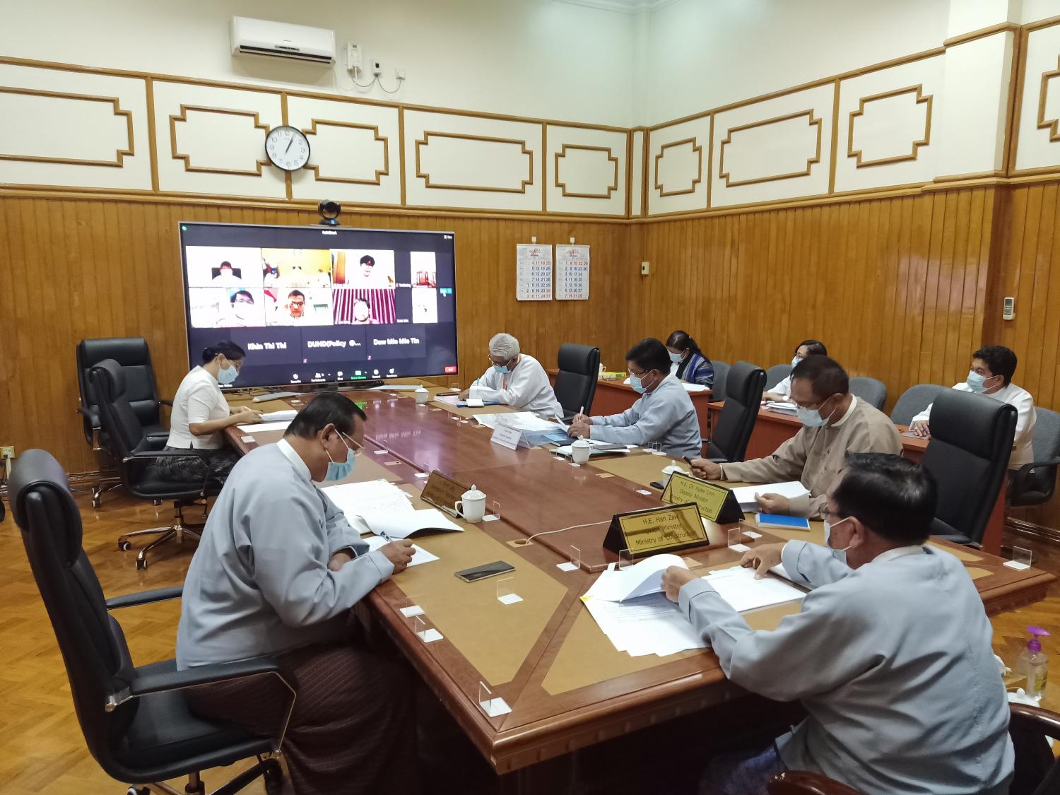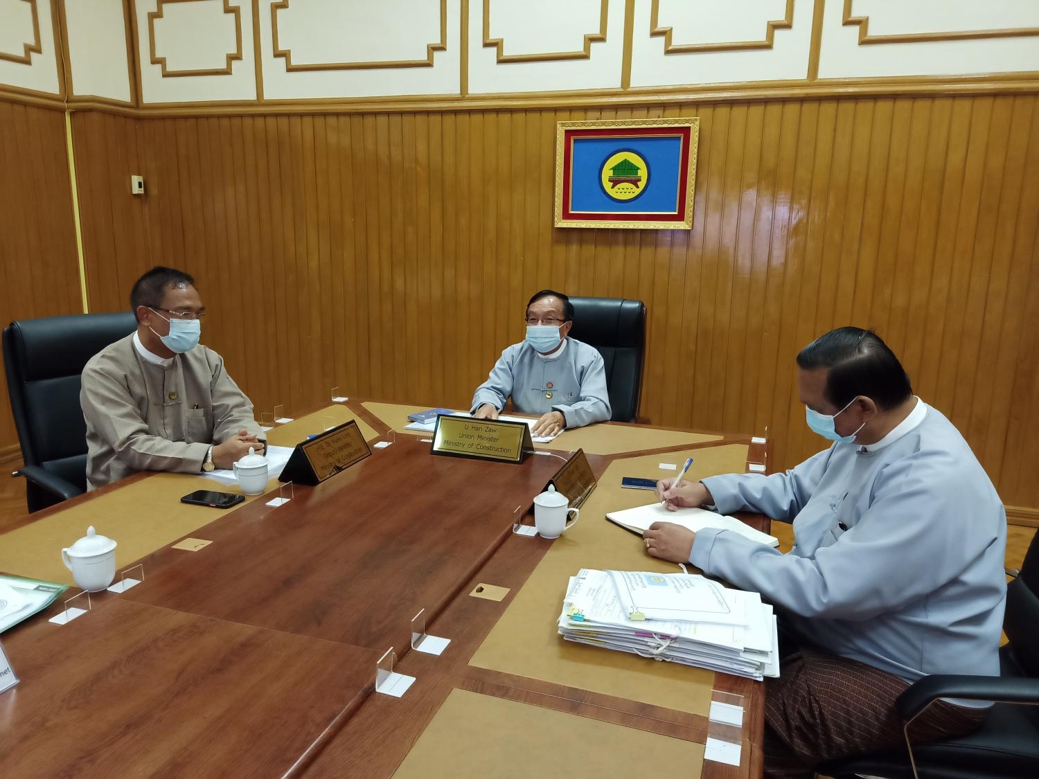 လုပ်ငန်းညှိနှိုင်း အစည်းအဝေးသို့ ပြည်ထောင်စုဝန်ကြီး ဦးဟန်ဇော်၊ ဒုတိယဝန်ကြီး ဒေါက်တာ ကျော်လင်း၊ အမြဲတမ်းအတွင်းဝန်၊ မြို့ပြနှင့်အိမ်ရာ ဖွံ့ဖြိုးရေး ဦးစီးဌာန ညွှန်ကြားရေးမှူးချုပ်နှင့် တာဝန်ရှိသူများ နေပြည်တော်ကောင်စီဝင် ဦးတင်ထွန်း၊ ရန်ကုန်တိုင်းဒေသကြီး စက်မှု၊ လက်မှုနှင့် လမ်းပန်း ဆက်သွယ်ရေး ဝန်ကြီး ဒေါ်နီလာကျော်၊ မန္တလေးတိုင်းဒေသကြီး လျှပ်စစ်၊ စွမ်းအင်နှင့် ဆောက်လုပ်ရေးဝန်ကြီး ဦးဇာနည်အောင်၊ ပုဂ္ဂလိက လုပ်ငန်းရှင် အသင်းချုပ် (၃) ခုတို့မှ ဥက္ကဋ္ဌတို့က Video Conferencing ဖြင့် ချိတ်ဆက်တက်ရောက်သည်။