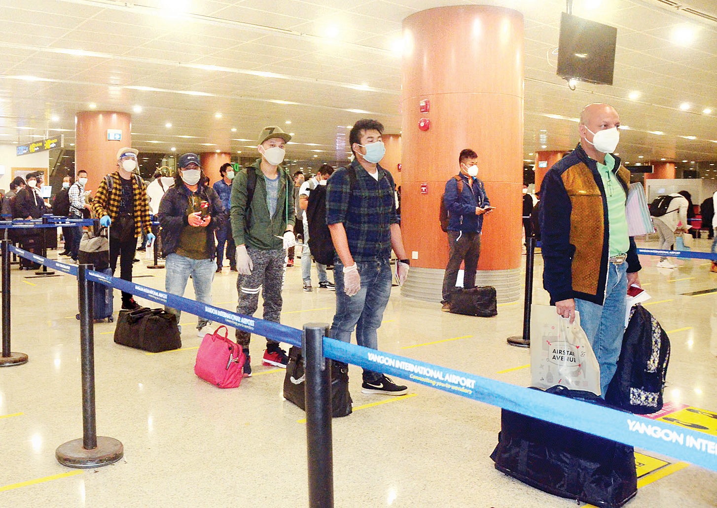 ၎င်းတို့    ရန်ကုန်အပြည်ပြည်ဆိုင်ရာလေဆိပ်သို့ ရောက်ရှိချိန်တွင် လူဝင်မှုကြီးကြပ်ရေး၊ ကျန်းမာရေးစိစစ်ရေး၊ သီးသန့်စီစဉ်ပေး သည့်နေရာ/ သတ်မှတ်ဟိုတယ်များ၌ အသွားအလာကန့်သတ်မှု ခုနစ်ရက်နှင့် နေအိမ်တွင် အသွားအလာကန့်သတ်မှု ခုနစ်ရက် နေထိုင်စေရေးတို့ကို အလုပ်သမား၊ လူဝင်မှုကြီးကြပ်ရေးနှင့်ပြည်သူ့အင်အားဝန်ကြီးဌာန၊ ကျန်းမာရေးနှင့်အားကစားဝန်ကြီး ဌာနနှင့် ရန်ကုန်တိုင်းဒေသကြီးအစိုးရအဖွဲ့တို့မှ သက်ဆိုင်ရာအခန်းကဏ္ဍအလိုက် တာဝန်ယူဆောင်ရွက်ပေးခဲ့ကြသည်။