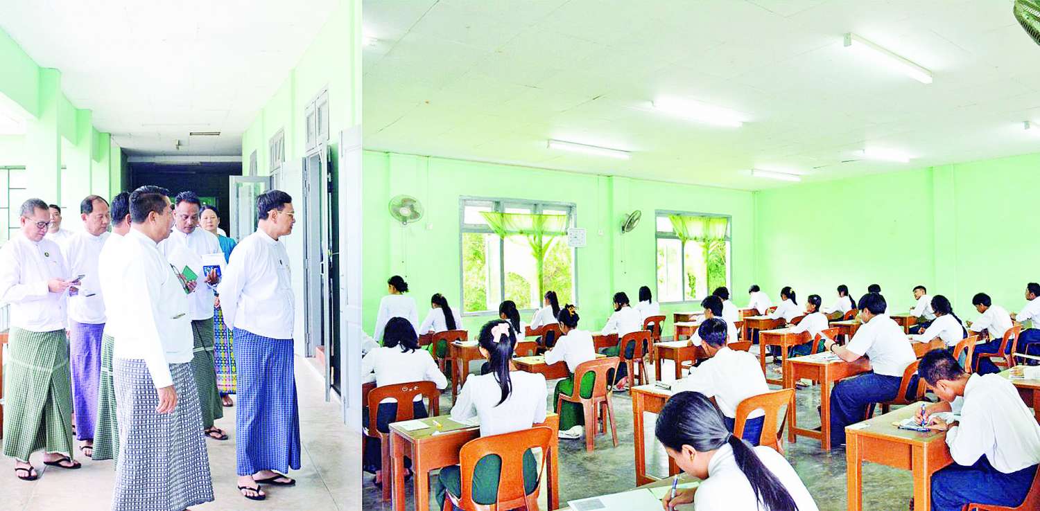 ပညာရေးဝန်ကြီးဌာန ဒုတိယဝန်ကြီး ဒေါက်တာဇော်မြင့်နှင့် ဦးနေမျိုးလှိုင်သည် ပညာရေးဝန်ကြီးဌာနရှိ ဦးစီးဌာနများမှ ညွှန်ကြားရေးမှူးချုပ်များ၊ နေပြည်တော်ကောင်စီနယ်မြေ ပညာရေးမှူးနှင့်အတူ ယနေ့နံနက်ပိုင်းတွင် နေပြည်တော်ကောင်စီနယ်မြေ ဇေယျာသီရိမြို့နယ် အမှတ် (၁) အခြေခံပညာအထက်တန်းကျောင်းရှိ တက္ကသိုလ်ဝင်စာမေးပွဲစာစစ်ဌာနသို့ ရောက်ရှိကာ တက္ကသိုလ်ဝင်စာမေးပွဲပထမနေ့ မြန်မာစာဘာသာ ဖြေဆိုနေမှုကို လှည့်လည်ကြည့်ရှုအားပေးသည်။