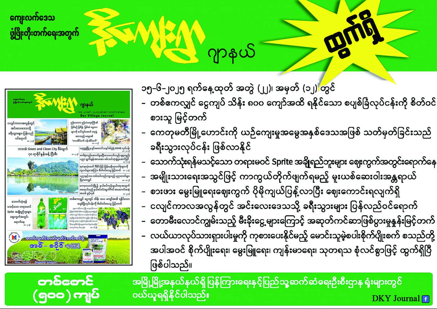 ဒို့ကျေးရွာဂျာနယ် အတွဲ (၂၂)၊ အမှတ် (၁၂) ထွက်ရှိ