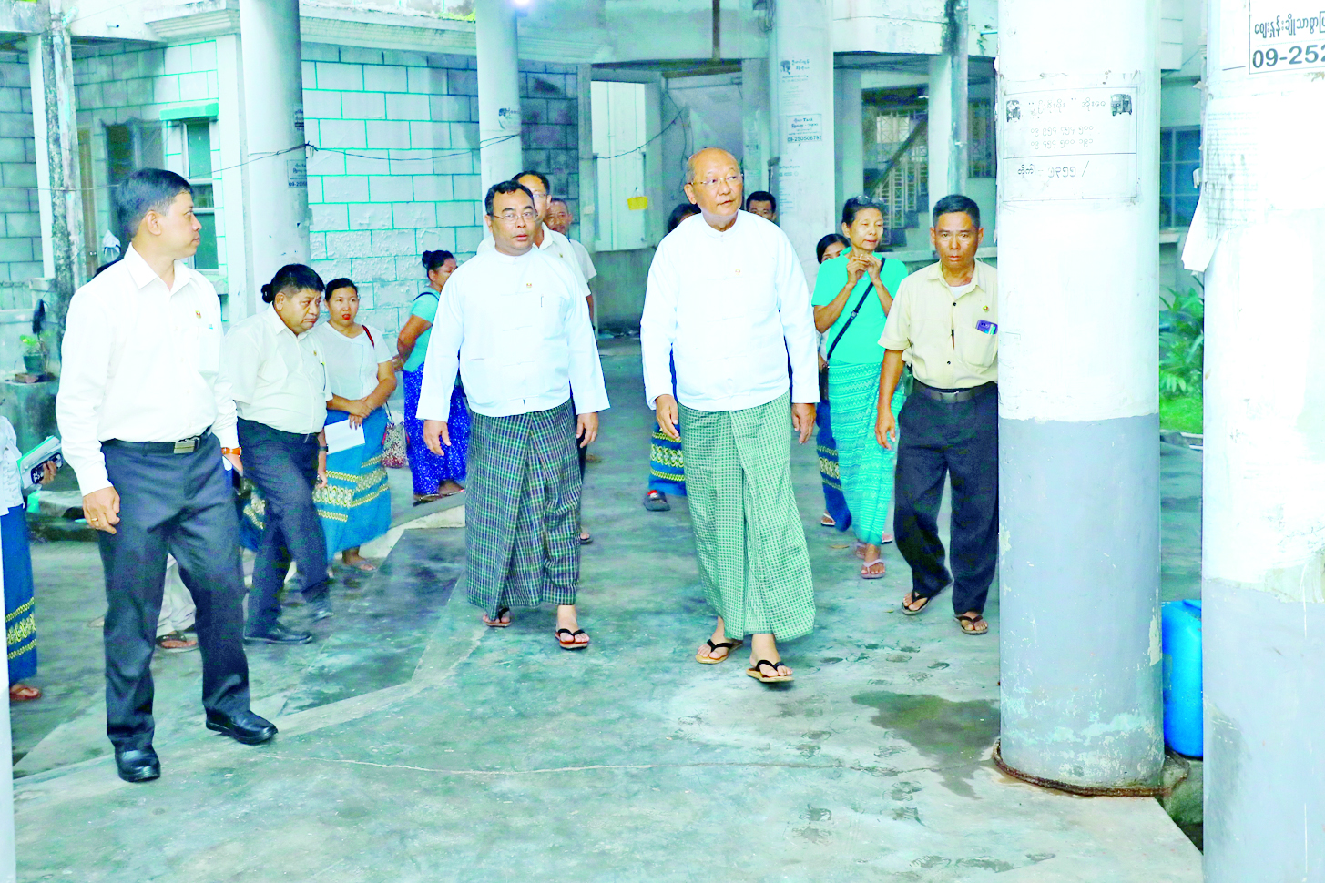 ဆက်လက်ပြီး ပြည်ထောင်စုဝန်ကြီးနှင့်အဖွဲ့သည် လိမ္မော်ရောင်အဆင့် သတ်မှတ်ထားသည့် ဘောဂသိဒ္ဓိရပ်ကွက်ရှိ တိုက်အမှတ် (၇၄၇)၊ မူလကအနီရောင်အဆင့် သတ်မှတ်ထားပြီး သက်ဆိုင်ရာ ဝန်ကြီးဌာနများမှပေါင်းစပ်၍ အဆင့်ဆင့်စစ်ဆေးပြီး အပြာရောင်အဆင့်အဖြစ် ပြောင်းလဲသတ်မှတ်ခဲ့သည့် ဝဏ္ဏသိဒ္ဓိရပ်ကွက် ဘူးကွဲအိမ်ရာရှိ တိုက်အမှတ်(၅၃၅၀)နှင့် (၅၃၅၁)တို့ကို လိုက်လံကြည့်ရှုစစ်ဆေးပြီး အသေးစား၊ အလတ်စားနှင့်အကြီးစားပြုပြင်မှုများ ပြန်လည်ပြုပြင်ဆောင်ရွက်ရန်လိုအပ်သည့် အခြေအနေများနှင့် ပြုပြင်ဆောင်ရွက်ပြီးစီးပါက ဝန်ထမ်းများနှင့် ဝန်ထမ်းမိသားစုဝင်များအား အမြန်ဆုံးပြန်လည်ပြောင်းရွှေ့နေထိုင်နိုင်စေရေးနှင့် ဝန်ထမ်းများ အဆင်ပြေချောမွေ့စွာဖြင့် မိုးလုံလေလုံနေထိုင်နိုင်စေရေးအတွက် လိုအပ်သည်များကို သက်ဆိုင်ရာဌာနများနှင့် ပေါင်းစပ်ညှိနှိုင်းဆောင်ရွက်ပေးသွားရန် တာဝန်ရှိသူများအား မှာကြားခဲ့ကြောင်း သိရသည်။