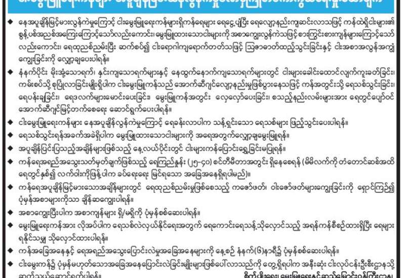 ထို့အတူ စွမ်းအင်ဝန်ကြီးဌာနအောက်ရှိ ပြည်နယ်နှင့်တိုင်းဒေသကြီး ကြီးကြပ်စစ်ဆေးရေး အရာရှိရုံးများ၊ ရေနံမြေများ၊ စက်ရုံ၊ အလုပ်ရုံများ၌လည်း ခရေ၊ ကျွန်း၊ ပျဉ်းကတိုး၊ မဟော်ဂနီ၊ မန်ကျည်း၊ သစ်ဆိမ့်ပင်၊ သပြေ၊ ကုက္ကို၊ ဝက်သစ်ချနှင့် အခြား အရိပ်ရ လေကာပင် စုစုပေါင်း ၄၅၆၀ ကို စနစ်တကျစိုက်ပျိုးခဲ့ကြကြောင်း သတင်းရရှိသည်။
