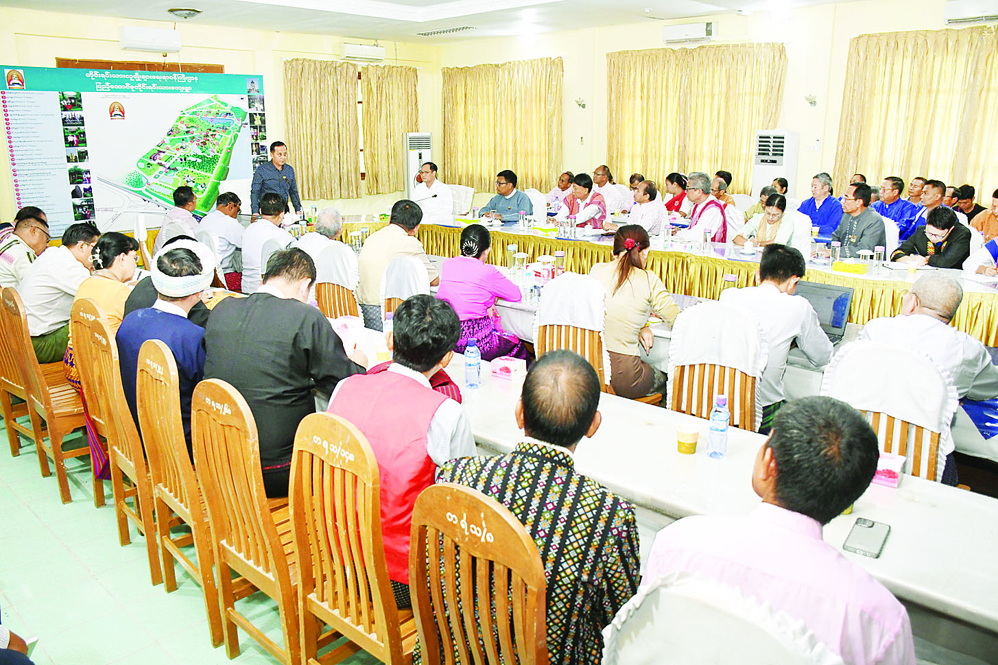 ထို့နောက် တိုင်းဒေသကြီး တိုင်းရင်းသားရေးရာဝန်ကြီးက ရန်ကုန်တိုင်းဒေသကြီးအတွင်း တိုင်းရင်းသားရေးရာကိစ္စရပ်များ၊ ဒေသဖွံ့ဖြိုးရေးလုပ်ငန်း ဆောင်ရွက်နေမှုအခြေအနေများနှင့်စပ်လျဉ်း၍ ရှင်းလင်းတင်ပြသည်။