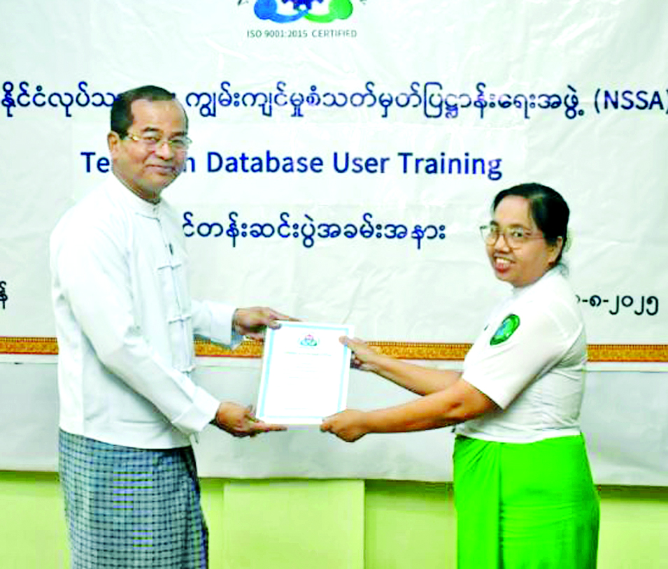မြန်မာနိုင်ငံလုပ်သားများကျွမ်းကျင်မှုစံသတ်မှတ်ပြဋ္ဌာန်းရေးအဖွဲ့(NSSA) တွင် ခန့်အပ်ထားသည့် စစ်ဆေးအကဲဖြတ်သူ(Assessor)များအတွက် စစ်ဆေးအကဲဖြတ်ရေးဆိုင်ရာ အချက်အလက်များနှင့် မေးခွန်းများကို Database မှ စနစ်တကျ ထုတ်ယူအသုံးပြုနိုင်ရန် ရည်ရွယ်ဖွင့်လှစ်သည့် Test Item Database User Training သင်တန်းဆင်းပွဲအခမ်းအနားကို ယနေ့မွန်းလွဲပိုင်းတွင် ရန်ကင်းမြို့နယ်ရှိ ကျွမ်းကျင်မှုလေ့ကျင့်ရေး သင်တန်းကျောင်း(ရန်ကင်း)၌ ကျင်းပသည်။