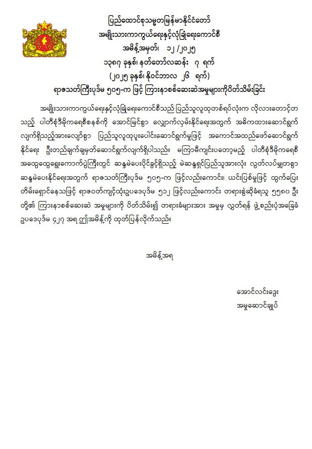 ဝန်ကြီးဌာန ကြေညာချက်များ