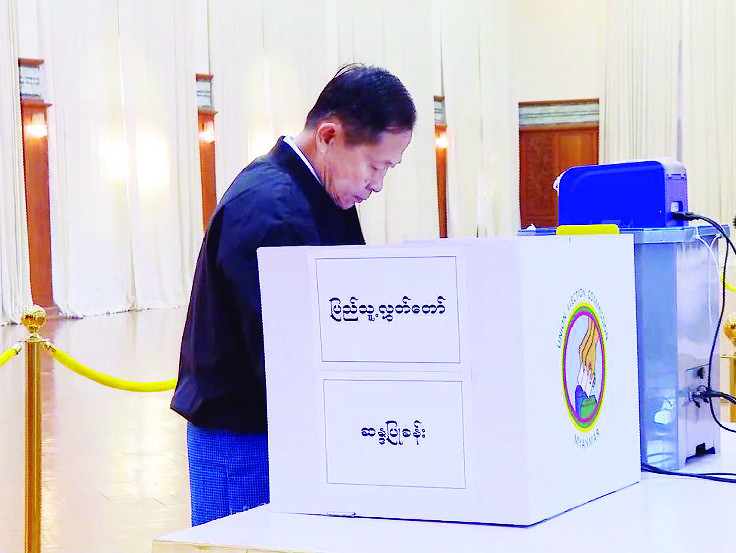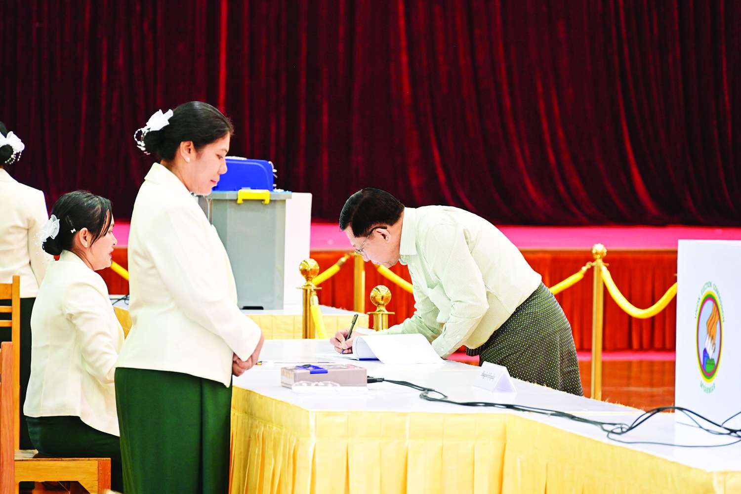 ထိုသို့ဆန္ဒမဲများပေးကြရာ နိုင်ငံတော်ယာယီသမ္မတ နိုင်ငံတော်လုံခြုံရေးနှင့် အေးချမ်းသာယာရေးကော်မရှင်ဥက္ကဋ္ဌ ဗိုလ်ချုပ်မှူးကြီး မင်းအောင်လှိုင်သည် ကော်မရှင်ဒုတိယဥက္ကဋ္ဌ ဒုတိယတပ်မတော်ကာကွယ်ရေးဦးစီးချုပ် ကာကွယ်ရေးဦးစီးချုပ်(ကြည်း) ဒုတိယဗိုလ်ချုပ်မှူးကြီး စိုးဝင်းနှင့် ဇနီး ဒေါ်သန်းသန်းနွယ်၊ ကော်မရှင်အတွင်းရေးမှူး ဗိုလ်ချုပ်ကြီး ရဲဝင်းဦးနှင့် ဇနီး၊ ကော်မရှင်အဖွဲ့ဝင် ညှိနှိုင်းကွပ်ကဲရေးမှူး (ကြည်း၊ ရေ၊ လေ) ဗိုလ်ချုပ်ကြီး ကျော်စွာလင်းနှင့် ဇနီး၊ ကာကွယ်ရေးဦးစီးချုပ်ရုံးမှ အဆင့်မြင့်တပ်မတော်အရာရှိကြီးများနှင့် ဇနီးများ၊ အရာရှိ၊ စစ်သည်၊ မိသားစုဝင်များနှင့်အတူ နေပြည်တော်ကောင်စီနယ်မြေ ဇေယျာသီရိမြို့နယ် အနော်ရထာရပ်ကွက်ရှိ မဲရုံအမှတ်(၁)၌ ပါဝင်ဆန္ဒမဲပေးကြသည်။