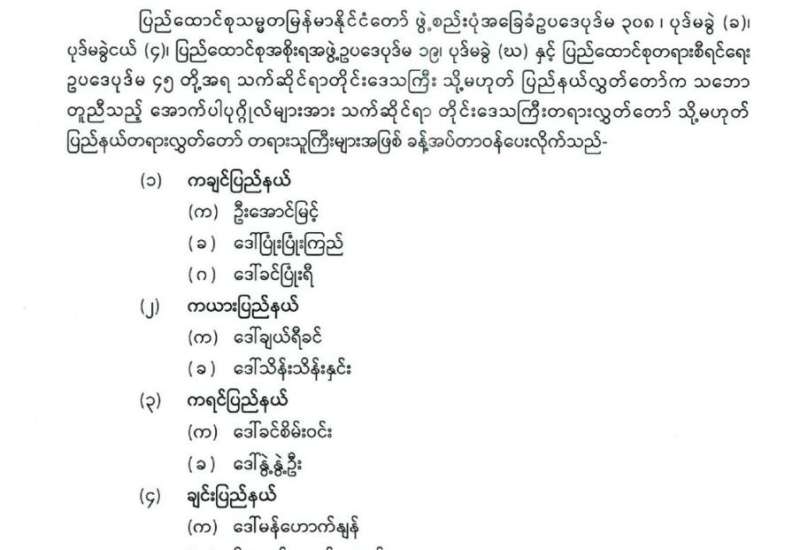 တိုင်းဒေသကြီး သို့မဟုတ် ပြည်နယ်စာရင်းစစ်ချုပ်များ ခန့်အပ်တာဝန်ပေးခြင်း