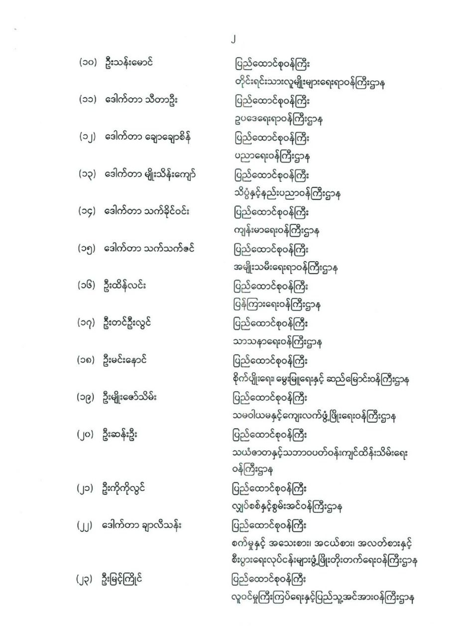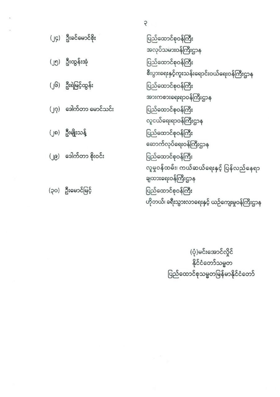 နေပြည်တော်စည်ပင်သာယာရေးကော်မတီ ဒုတိယဥက္ကဋ္ဌ၊ ဒုတိယမြိုတော်ဝန် ပူးတွဲတာဝန်ပေးအပ်ခြင်း