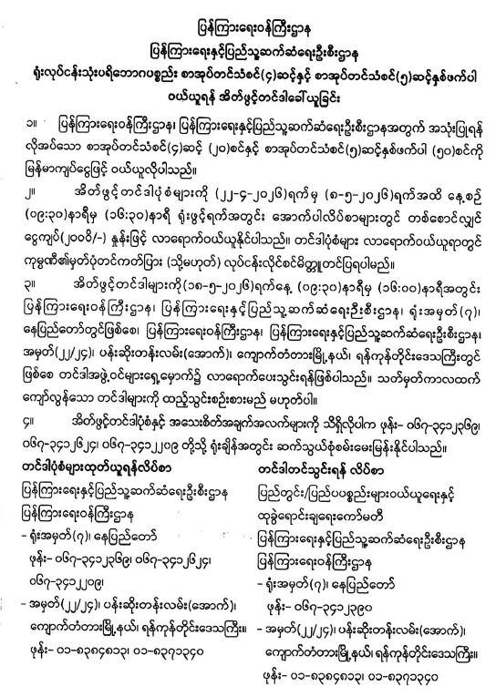 ရုံးလုပ်ငန်းသုံးပရိဘောဂပစ္စည်း စာအုပ်တင်သံစင် (၄) ဆင့်နှင့် စာအုပ်တင်သံစင် (၅) ဆင့်နှစ်ဖက်ပါ ဝယ်ယူရန် အိတ်ဖွင့်တင်ဒါခေါ်ယူခြင်း 04/10/2026