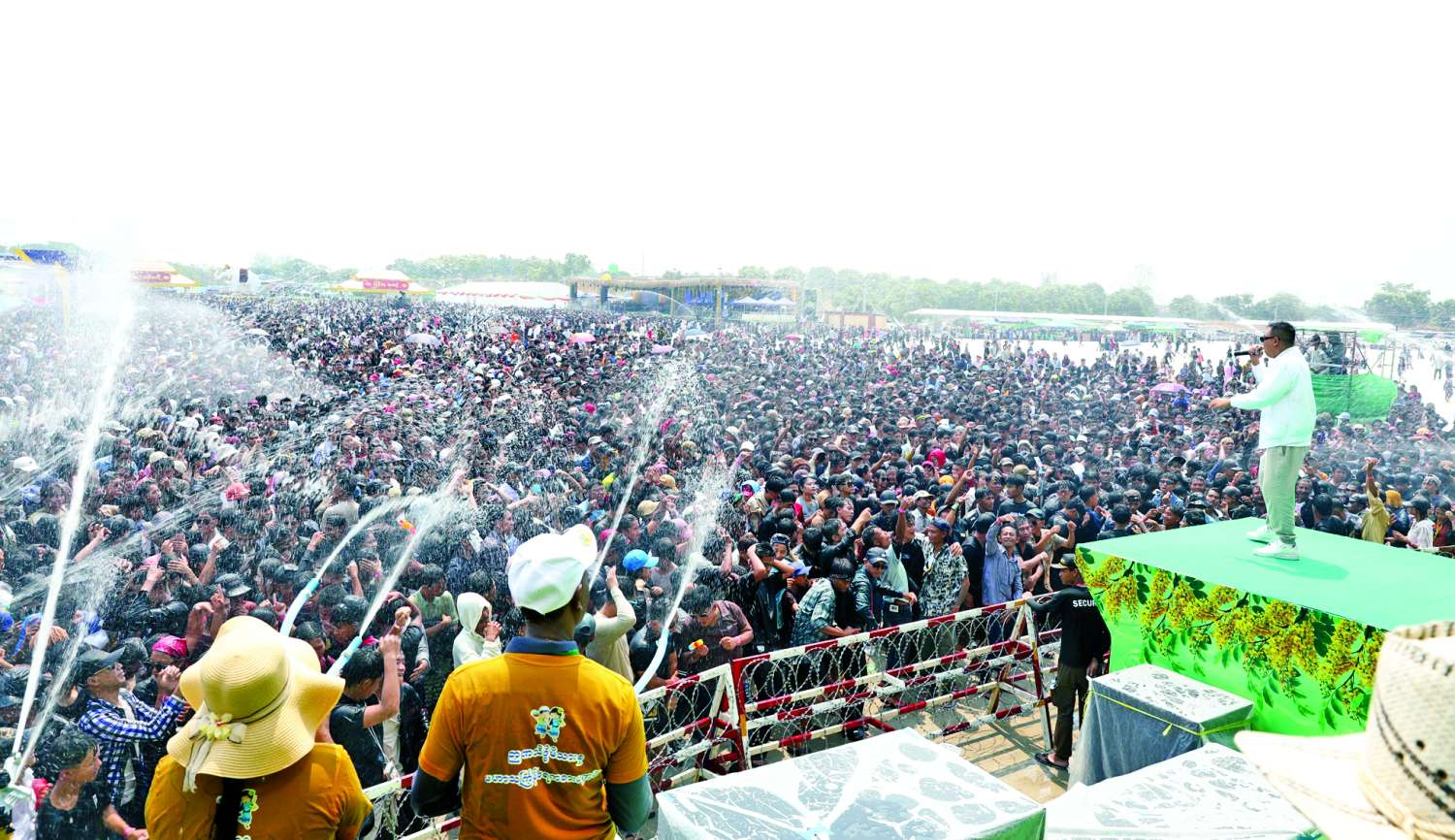 နေပြည်တော်ရင်ပြင်၌ကျင်းပသည့် နေပြည်တော်လမ်းလျှောက်သင်္ကြန်တွင် ယနေ့သင်္ကြန်အကျနေ့ နံနက်ပိုင်းမှစတင်ကာ လာရောက်လည်ပတ်ကြသူပြည်သူများဖြင့် ကြိတ်ကြိတ်တိုးစည်ကားလျက်ရှိသည်။