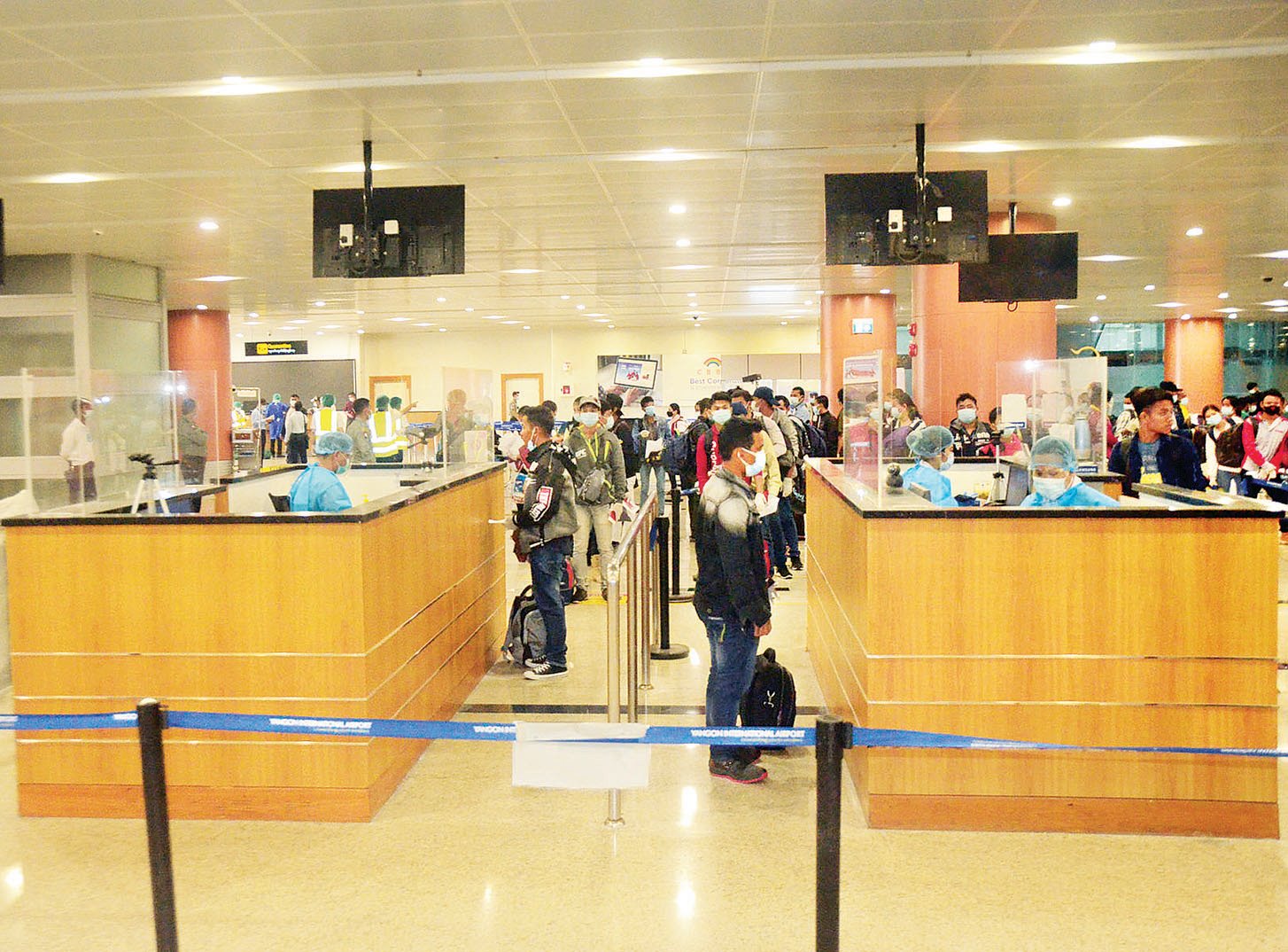 ၎င်းတို့    ရန်ကုန်အပြည်ပြည် ဆိုင်ရာလေဆိပ်သို့ ရောက်ရှိချိန်တွင် လူဝင်မှုကြီးကြပ်ရေး၊     ကျန်းမာရေး စိစစ်ရေး၊    သီးသန့်စီစဉ်ပေးသည့် နေရာ/       သတ်မှတ်ဟိုတယ်များ၌ အသွားအလာ   ကန့်သတ်မှုခုနစ်ရက်နှင့်  နေအိမ်တွင်      အသွားအလာ ကန့်သတ်မှုခုနစ်ရက် နေထိုင်စေရေး တို့ကို အလုပ်သမား၊ လူဝင်မှုကြီးကြပ်ရေးနှင့်   ပြည်သူ့အင်အားဝန်ကြီးဌာန၊ ကျန်းမာရေးနှင့်    အားကစားဝန်ကြီးဌာနနှင့်      ရန်ကုန်တိုင်းဒေသကြီး အစိုးရအဖွဲ့တို့မှ   သက်ဆိုင်ရာ  အခန်း ကဏ္ဍအလိုက်   တာဝန်ယူဆောင်ရွက် ပေးခဲ့ကြသည်။