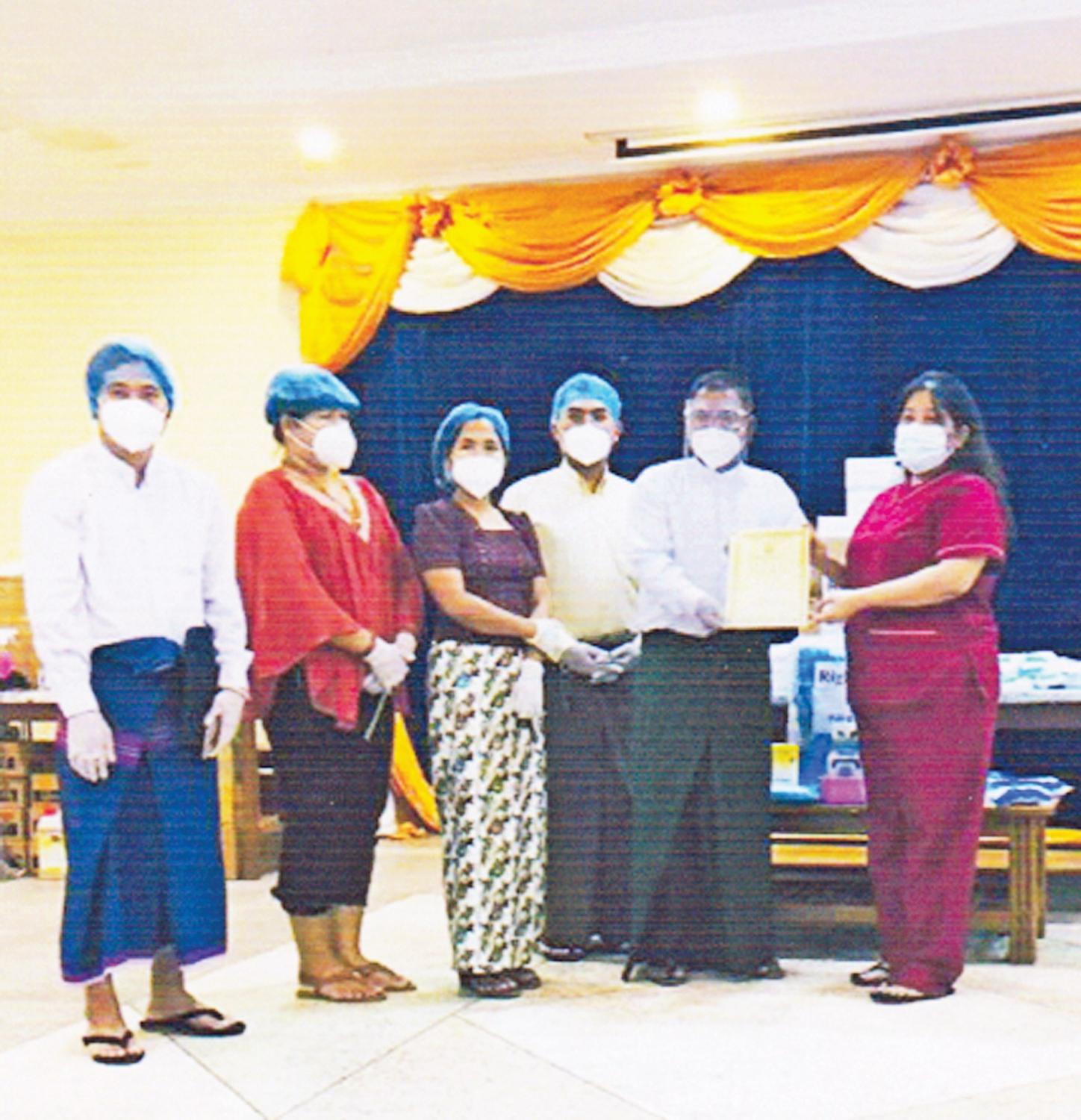 မြန်မာနိုင်ငံ အမျိုးသားလူ့အခွင့်အရေးကော်မရှင်တွင် လူ့အခွင့်အရေး အခြေခံသင်တန်းနှင့် အဆင့်မြင့်သင်တန်း တက်ရောက်ခဲ့ကြ သည့် သင်တန်းသူ သင်တန်းသားများဖြင့် ဖွဲ့စည်းတည်ထောင်ထားသည့် Rights For Life က ရန်ကုန်တိုင်းဒေသကြီး မြောက်ဥက္ကလာပ အထွေထွေရောဂါကုနှင့် သင်ကြားရေးဆေးရုံကြီးတွင် အသုံးပြုရန်အတွက် ကိုဗစ်-၁၉ ရောဂါ ကာကွယ်၊ ကုသရေး ပစ္စည်း များကို ယနေ့ မွန်းလွဲပိုင်းက မြောက်ဥက္ကလာပ အထွထွေရောဂါ ကုနှင့် သင်ကြားရေးဆေးရုံးကြီးသို့ သွားရောက် လှူဒါန်း သည်။