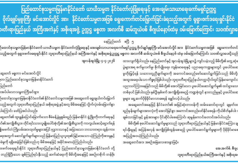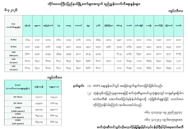 ရန်ကုန်မြို့နှင့် မန္တလေးမြို့အတွက် ရည်ညွှန်းလက်ကားဈေးနှုန်းများနှင့် ပြည်ထောင်စုနယ်မြေ နေပြည်တော်၊ တိုင်းဒေသကြီး/ပြည်နယ် မြို့တော်များအတွက် ရည်ညွှန်းလက်လီဈေးနှုန်းများ