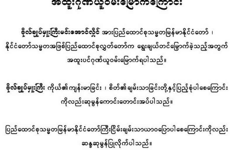 မြန်မာနှစ်သစ်ကူးရုံးပိတ်ရက်များအတွင်း ပြန်ကြားရေးဝန်ကြီးဌာန၊ သတင်းနှင့်စာနယ်ဇင်းလုပ်ငန်း၏ နေ့စဉ်ထုတ်သတင်းစာများကို အလှည့်ကျထုတ်ဝေမည်ဖြစ်ပါသည်။