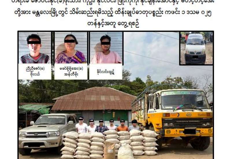 မူးယစ်ဆေးဝါးတားဆီးနှိမ်နင်းရေးရဲတပ်ဖွဲ့မှ တပ်ဖွဲ့ဝင်များပါဝင်သော ပူးပေါင်းအဖွဲ့သည် မတ်လ ၂၁ ရက်နေ့ ညနေ ၄ နာရီခွဲအချိန် မန္တလေးတိုင်းဒေသကြီး၊ ချမ်းအေးသာစံမြို့နယ်၊ ကန်ကောက်ရပ်ကွက်၊ ၂၆ လမ်း၊ ၅၇ လမ်းနှင့် ၅၈ လမ်းကြားရှိ နေအိမ်အား သတင်းအရ ဝင်ရောက်ရှာဖွေရာ အိမ်ရှင်ကိုဦးနှင့်အတူ ဇော်ဝင်းနိုင်(ခ)ဖိုးသားတို့အား တရားမဝင်သိုလှောင်ထားသည့် ထိန်းချုပ်ဓာတုပစ္စည်း ကဖင်း ၁ ဒသမ ၀၂၅ တန်၊ TOYOTA HILUX SURF ယာဉ် ၁ စီးနှင့်အတူ ဖမ်းဆီးရမိခဲ့သည်။