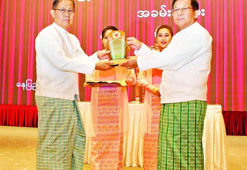 ရွေးကောက်တင်မြှောက်ခြင်းခံရသောသမ္မတ၏ ဂုဏ်ပြုအထိမ်းအမှတ် လက်ဆောင်ချီးမြှင့်ခြင်းအခမ်းအနားကို ယနေ့နံနက်ပိုင်းတွင် အမျိုးသားကာကွယ်ရေးနှင့်လုံခြုံရေးကောင်စီဥက္ကဋ္ဌရုံး၊ သဘင်ဆောင်ခန်းမ၌ ကျင်းပပြုလုပ်ရာ ရွေးကောက်တင်မြှောက်ခြင်းခံရသောသမ္မတ နိုင်ငံတော်လုံခြုံရေးနှင့်အေးချမ်းသာယာရေးကော်မရှင်ဥက္ကဋ္ဌ ဗိုလ်ချုပ်မှူးကြီး မင်းအောင်လှိုင် တက်ရောက်အမှာစကားပြောကြားပြီး ဂုဏ်ပြုအထိမ်းအမှတ်လက်ဆောင်များ ချီးမြှင့်သည်။