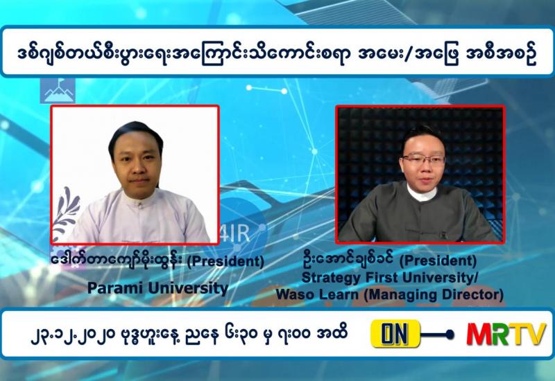ကိုဗစ်-၁၉ ရောဂါဖြစ်ပွားမှု ကာလအတွင်း စီးပွားရေးလုပ်ငန်းများ ပြန်လည်လုပ်ကိုင် လည်ပတ်နိုင်ရန် ရည်ရွယ်ချက်ဖြင့် ပြည်သူကို အသိပညာ မျှဝေပေးမည့် “ဒစ်ဂျစ်တယ် စီးပွားရေးအကြောင်း သိကောင်းစရာ အမေး/အဖြေ အစီအစဉ် ” ကို နိုဝင်ဘာ၂၅ရက်မှစ၍ အပတ်စဉ်ဗုဒ္ဓဟူးနှင့် ကြာသပတေးနေ့ များတွင် ညနေ ၆ နာရီခွဲ မှ ည ၇ နာရီအထိ မြန်မာ့အသံနှင့် ရုပ်မြင်သံကြားမှ ထုတ်လွှင့်ပြသလျှက်ရှိသည်။