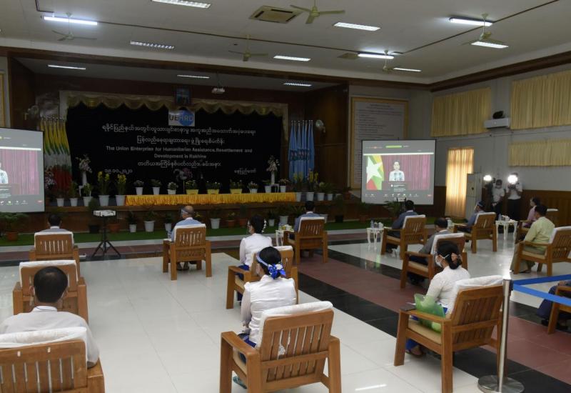 ရခိုင်ပြည်နယ်အတွင်း လူသားချင်းစာနာမှု အကူအညီ အထောက်အပံ့ပေးရေး၊ ပြန်လည် နေရာချထားရေး ဖွံ့ဖြိုးရေးစီမံကိန်း UEHRD ကော်မတီ၏ ၃ နှစ်ပြည့် နှစ်ပတ်လည် အခမ်းအနားကို ယနေ့ နံနက် ၉ နာရီခွဲတွင် နေပြည်တော်ရှိ လူမှုဝန်ထမ်း၊ ကယ်ဆယ်ရေးနှင့် ပြန်လည်နေရာချထားရေးဝန်ကြီးဌာန အစည်းအဝေးခန်မ၌ Zoom Application Online System ဖြင့် ကျင်းပသည်။