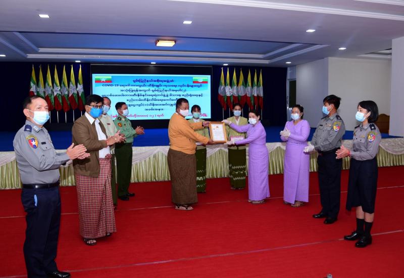 ရှမ်းပြည်နယ်အတွင်း ကိုဗစ်−၁၉ ရောဂါ ကာကွယ်ထိန်းချုပ်ကုသရေးလုပ်ငန်းများတွင် အသုံးပြု နိုင်ရန်ရည်ရွယ်၍ ရှမ်းပြည်နယ်အစိုးရအဖွဲ့ထံသို့ ယနေ့နေ့လည် ၁၂ နာရီ က တောင်ကြီးမြို့၊ ရှမ်းပြည်နယ်အစိုးရရုံး အစည်းအဝေးခန်းမ၌ အလှူရှင်များမှ လာရောက်လှူဒါန်းကြောင်း သိရသည်။