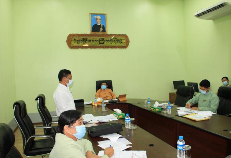 ပဲခူးတိုင်းဒေသကြီးအစိုးရအဖွဲ့ရုံး၊ အစည်းအဝေးခန်းမ၌ ယမန်နေ့ မွန်းလွဲ ၃ နာရီခွဲက ကိုဗစ်-၁၉ ထိန်းချုပ်ရေးနှင့် အရေးပေါ်တုံ့ပြန်ရေးကော်မတီ အစည်းအဝေးအား