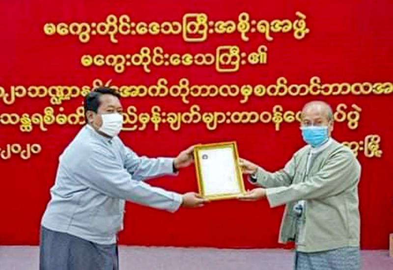 မကွေးတိုင်းဒေသကြီးအတွင်း ကိုဗစ်-၁၉ ရောဂါကာကွယ်ထိန်းချုပ် ကုသရေးဆိုင်ရာ လုပ်ငန်းများတွင် အသုံးပြုနိုင်ရန် အတွက် ယနေ့နံနက်ပိုင်းက တိုင်းဒေသကြီး ဝန်ကြီးချုပ် ဒေါက်တာ အောင်မိုးညိုထံ မကွေးတိုင်းဒေသကြီး ပတ်ဝန်းကျင် ထိန်းသိမ်း ရေးဦးစီးဌာနက တိုင်းဒေသကြီးအစိုးရအဖွဲ့ရုံး အစည်းအဝေးခန်းမ မှာ လှူဒါန်း ပေးအပ်ခဲ့ကြောင်း သိရသည်။