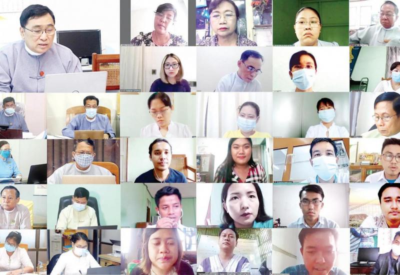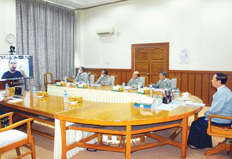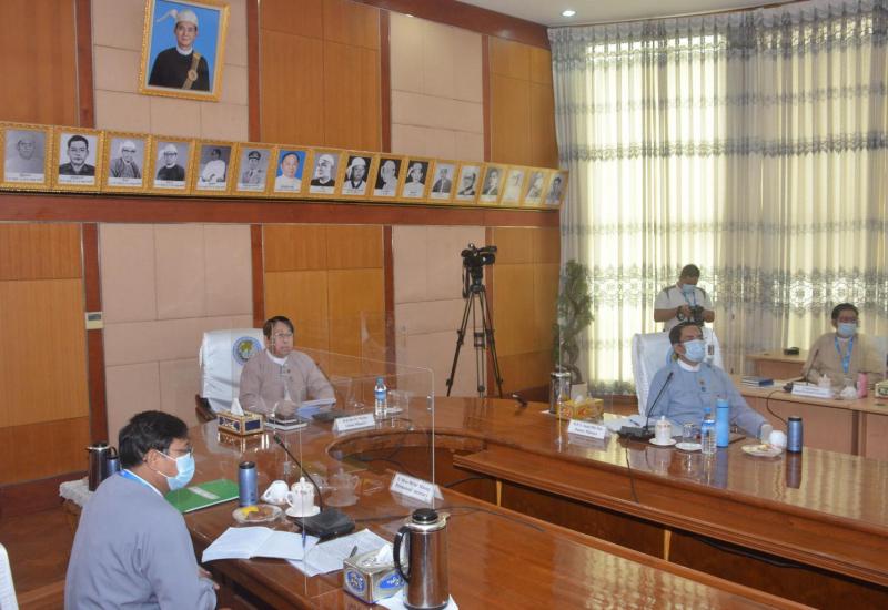 ပဲခူးတိုင်းဒေသကြီးအစိုးရအဖွဲ့ရုံး၊ အစည်းအဝေးခန်းမ၌ ယမန်နေ့ မွန်းလွဲ ၁ နာရီ ၃၀ မိနစ် အချိန်က ပဲခူးတိုင်းဒေသကြီး ကိုဗစ်-၁၉ ကာကွယ်ရေးနှင့် အရေးပေါ်တုံ့ပြန်ရေးကော်မတီ လုပ်ငန်းညှိနှိုင်း အစည်းအဝေးကို Video Conferencing စနစ်ဖြင့် ကျင်းပပြုလုပ်သည်။