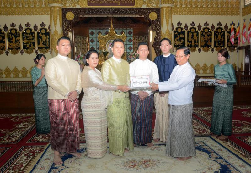 ထာဝရငြိမ်းချမ်းရေးစေတီတော် ဘက်စုံမွမ်းမံတည်ဆောက်ရေး၊ အချောသတ်လုပ်ငန်းများ ဆောင်ရွက်ရေးနှင့် နယ်စပ်တောင်တန်းဒေသ သာသနာပြုလုပ်ငန်းများအတွက် အလှူတော် ငွေပေးအပ်လှူဒါန်းပွဲ အခမ်း အနားကို ယနေ့ မွန်းလွဲ ၁ နာရီ တွင် ရန်ကုန်မြို့ ကမ္ဘာအေးကုန်းမြေရှိ ဝိဇယမင်္ဂလာဓမ္မသဘင်၌ ကျင်းပ သည်။