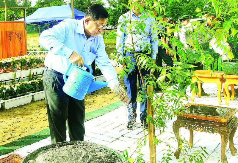 မကွေးတိုင်းဒေသကြီး၊ မင်းဘူးခရိုင်၊ မင်းဘူးမြို့နယ်၊ အပူပိုင်းဒေသ(၁၃)ခရိုင် စိမ်းလန်းစိုပြေရေး၊ ၂၀၂၅ ခုနှစ် နိုင်ငံတော်အဆင့် ဒုတိယအကြိမ် လူထုလှုပ်ရှားမှုအသွင်ဖြင့် သစ်ပင်စိုက်ပျိုးပွဲကို ယနေ့နံနက်ပိုင်းတွင် မင်းဘူးမြို့နယ်၊ မင်းဘူး-ပဒါန်း-အမ်းကားလမ်း မိုင်တိုင်အမှတ် ၄/၇ မှ ၅/၀ အကြားကျင်းပပြလုပ်ရာ နိုင်ငံတော်လုံခြုံရေးနှင့် အေးချမ်းသာယာရေးကော်မရှင်ဥက္ကဋ္ဌ ဗိုလ်ချုပ်မှူးကြီးမင်းအောင်လှိုင် တက်ရောက်၍ တမာပျိုးပင်ကို ဦးဆောင်စိုက်ပျိုးပေးသည်။