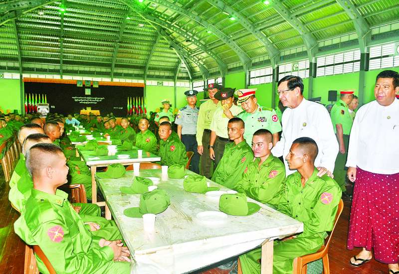 နိုင်ငံတော်ကာကွယ်ရေးနှင့်လုံခြုံရေးတာဝန်ထမ်းဆောင်နိုင်ရန်အတွက် ပြည်သူ့စစ်မှုထမ်းသင်တန်း အမှတ်စဉ်(၁၆)တွင် ပါဝင်တက်ရောက်ကြမည့် အရည်အချင်းကိုက်ညီသူ နိုင်ငံ့သားကောင်းများသည် သက်ဆိုင်ရာတိုင်းစစ်ဌာနချုပ်နယ်မြေများရှိ သင်တန်းကျောင်းအသီးသီးသို့ ရောက်ရှိ၍ လိုအပ်သည့် ကြိုတင်ပြင်ဆင်မှုများကို ဆောင်ရွက်ခဲ့ကြသည်။ ယနေ့နံနက်ပိုင်းတွင် အဆိုပါသင်တန်းကျောင်းအသီးသီး၌ ပြည်သူ့စစ်မှုထမ်းသင်တန်းအမှတ်စဉ်(၁၆) သင်တန်းဖွင့်ပွဲများ ပြုလုပ်ကြသည်။ သင်တန်းဖွင့်ပွဲများတွင် သင်တန်းကျောင်းများအလိုက် ကျောင်းအုပ်ကြီးများက သင်တန်းဖွင့်အမှာစကားများ ပြောကြားကြသည်။