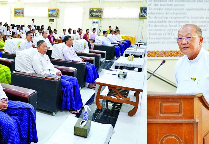 ဟိုတယ်နှင့်ခရီးသွားလာရေးဝန်ကြီးဌာန ပြည်ထောင်စုဝန်ကြီး Jeng Phang နော်တောင်သည် ယနေ့မွန်းလွဲပိုင်းက နေပြည်တော်သို့ လေ့လာရေးခရီးရောက်ရှိနေသည့် မန္တလာတက္ကသိုလ်မှ ခရီးသွားလုပ်ငန်းနှင့် ဧည့်ဝန်ဆောင်မှုဆိုင်ရာစီမံခန့်ခွဲမှုဘာသာရပ် အထူးပြုပထမနှစ်ကျောင်းသား ကျောင်းသူများအား ဝန်ကြီးဌာန ကျောက်စိမ်းခန်းမ၌ တွေ့ဆုံသည်။