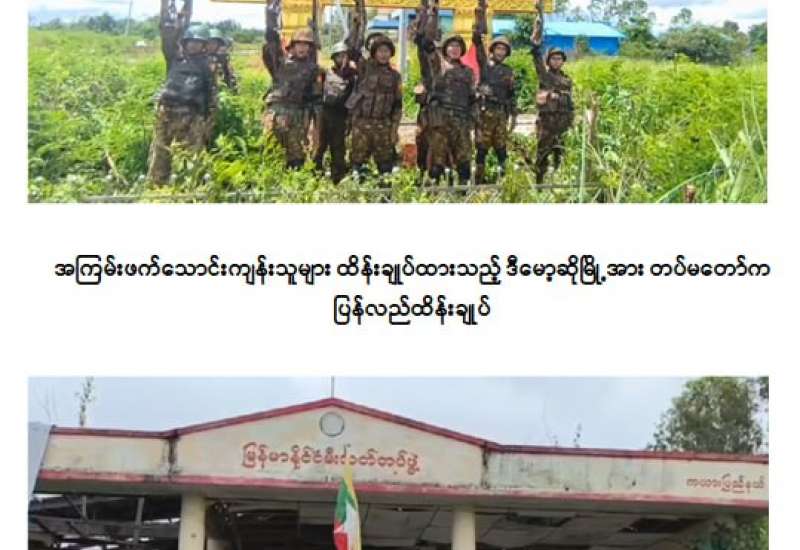 KNPP၊ KNDF အဖွဲ့များနှင့် PDF အမည်ခံ အကြမ်းဖက်သမားများ ယာယီထိန်းချုပ်ထားသည့် ကယားပြည်နယ်၊ ဒီးမော့ဆိုမြို့အား တပ်မတော်က ယနေ့ဩဂုတ် ၁၉ ရက်တွင် အပြည့်အဝပြန်လည်ထိန်းချုပ်ပြီး လိုအပ်သည့် နယ်မြေလုံခြုံရေးနှင့် နယ်မြေရှင်းလင်းရေးလုပ်ငန်းများ ဆက်လက်ဆောင်ရွက်လျက်ရှိကြောင်း သိရှိရသည်။