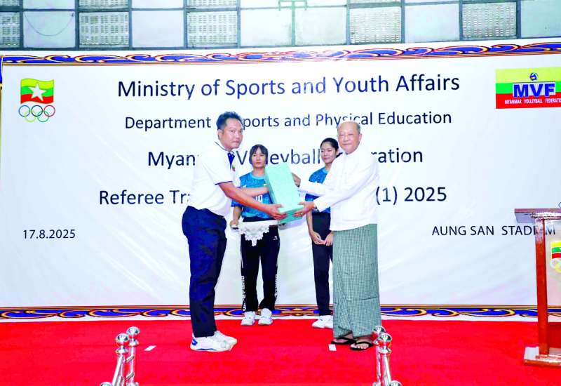 အားကစားနှင့်လူငယ်ရေးရာဝန်ကြီးဌာန အားကစားနှင့်ကာယပညာဦးစီးဌာနနှင့် မြန်မာနိုင်ငံဘော်လီဘောအဖွဲ့ချုပ်တို့ ပူးပေါင်းကြီးမှူးဖွင့်လှစ်သည့် မြန်မာနိုင်ငံဘော်လီဘောဒိုင်လူကြီး (Referee) သင်တန်းဆင်းပွဲအခမ်းအနားကို ယနေ့ မွန်းလွဲ ၁ နာရီတွင် ရန်ကုန်တိုင်းဒေသကြီး မင်္ဂလာတောင်ညွန့်မြို့နယ် မိုးလုံလေလုံအားကစားရုံ၌ ကျင်းပသည်။