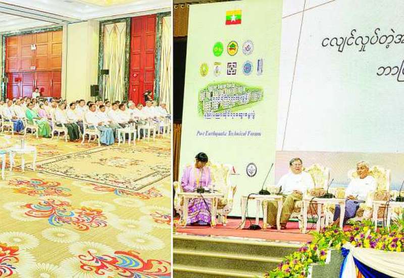 “ငလျင်ကာလအလွန် တည်ဆောက်ပြုပြင်ရေးလုပ်ငန်းများအတွက် နည်းပညာဆိုင်ရာ ပြန်လည်သုံးသပ်ခြင်းနှင့် အနာဂတ်တွင် ကြုံတွေ့လာနိုင်သည့် နည်းပညာဆိုင်ရာ စိန်ခေါ်မှုများအတွက် ကြိုတင်ပြင်ဆင်ခြင်း” နည်းပညာဆိုင်ရာဆွေးနွေးပွဲ (Post Earthquake Techni-cal Forum) ကို ယနေ့နံနက်ပိုင်းတွင် နေပြည်တော်မင်္ဂလာသီရိဟိုတယ်၌ ဆက်လက်ကျင်းပသည်။