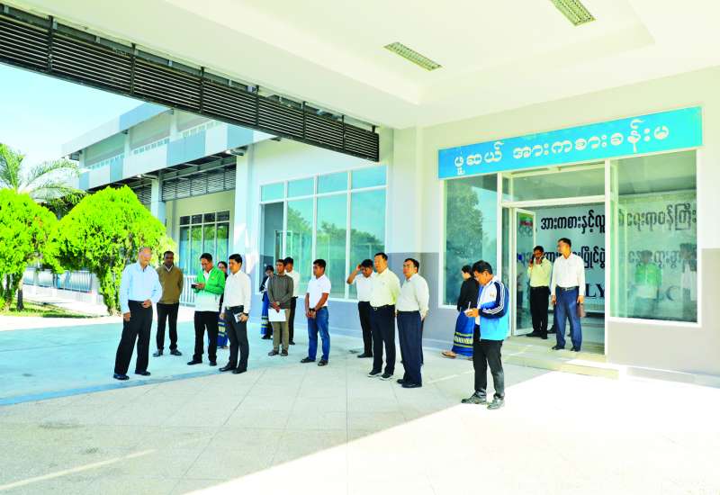 မြန်မာနိုင်ငံအိုလံပစ်ကော်မတီဥက္ကဋ္ဌ အားကစားနှင့်လူငယ်ရေးရာဝန်ကြီးဌာနနှင့် ဟိုတယ်နှင့်ခရီးသွားလာရေးဝန်ကြီးဌာန ပြည်ထောင်စုဝန်ကြီး Jeng Phang နော်တောင်သည် ဒုတိယဝန်ကြီးများဖြစ်ကြသည့် ဦးထိန်လင်း၊ ဦးဇင်မင်းထက်၊ တာဝန်ရှိသူများနှင့်အတူ ယနေ့နံနက်ပိုင်းတွင် ငလျင်ကြောင့် ထိခိုက်ပျက်စီးခဲ့သည့် ဝဏ္ဏသိဒ္ဓိအားကစားကွင်းအတွင်းရှိ အားကစားရုံ (B) နှင့် ဖူဆယ်အားကစားရုံတို့အား ပြန်လည်ပြုပြင်ဆောင်ရွက်နေမှုကို ကြည့်ရှုစစ်ဆေးသည်။