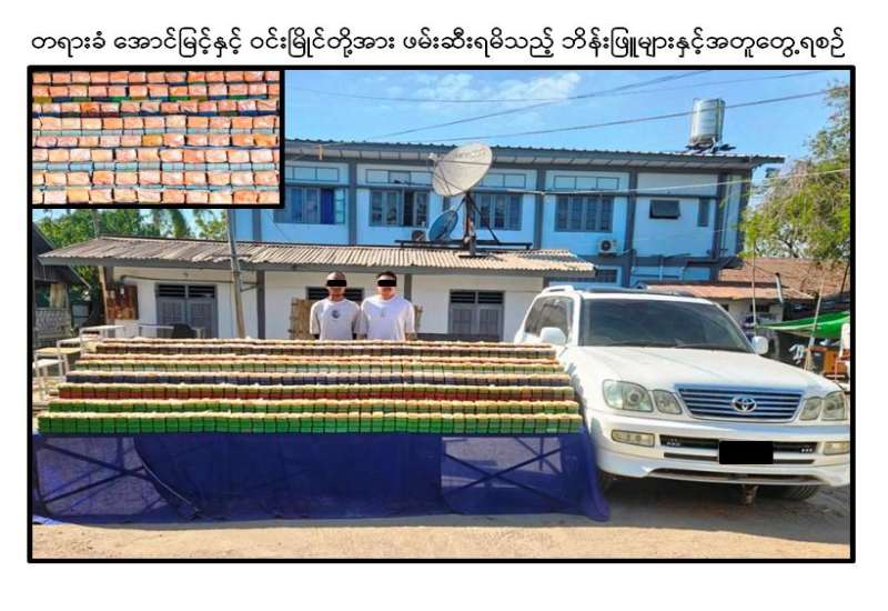 မူးယစ်ဆေးဝါးတားဆီးနှိမ်နင်းရေးရဲတပ်ဖွဲ့မှ တပ်ဖွဲ့ဝင်များပါဝင်သော ပူးပေါင်းအဖွဲ့သည် ဒီဇင်ဘာလ ၂၁ ရက်နေ့ ညနေ ၅ နာရီခွဲအချိန်သတင်းအရ ချမ်းမြသာစည်မြို့နယ်၊ ကန်သာယာရပ်ကွက်၊ ၅၆(A) x ၁၁၀ လမ်းထောင့်တွင် အောင်မြင့် မောင်းနှင်ပြီး ဝင်းမြိုင် လိုက်ပါလာသော TOYOTA LAND CRUISER မော်တော်ယာဉ်အား စစ်ဆေးရှာဖွေရာ ယာဉ်ပေါ်မှ ဘိန်းဖြူ ၄ ဒသမ ၄ ကီလို (၎င်းဒေသတန်ဖိုးငွေကျပ်သိန်း ၁,၁၀၀)အား ဖမ်းဆီးရမိပြီး စစ်ဆေးဖော်ထုတ်ချက်အရ ယင်းနေ့ည ၆ နာရီခွဲအချိန် ၎င်းတို့ ၂ ဦး နေထိုင်သည့် အမရပူရမြို့နယ်၊ “ဝဝ”(၂)ရပ်ကွက်ရှိနေအိမ်မှ ဘိန်းဖြူ ၉ ဒသမ ၉ ကီလို (၎င်းဒေသတန်ဖိုးငွေကျပ် ၂,၄၇၅ သိန်း)အား ထပ်မံသိမ်းဆည်းရမိခဲ့သဖြင့် စုစုပေါင်း ဘိန်းဖြူ ၁၄ ဒသမ ၃ ကီလို (၎င်းဒေသတန်ဖိုးငွေကျပ် ၃,၅၇၅ သိန်း)အား ဖမ်းဆီးရမိခြင်းဖြစ်ကြောင်း၊ ကွင်းဆက်စစ်ဆေးဖော်ထုတ်ချက်အရ ဖမ်းဆီးရမိဘိန်းဖြူများအား ဖယ်ခုံမြို့နယ်နေ ကျော်ဦး(ဖမ်းဆီးရန်ကျန်)မှ မန္တလေးသို့ ပို့ဆောင်ခြင်းဖြစ်ကြောင်းသိရှိရသဖြင့် ၎င်းတို့အား မူးယစ်ဆေးဝါးနှင့် စိတ်ကိုပြောင်းလဲစေသော ဆေးဝါးများဆိုင်ရာဥပဒေအရ အရေးယူထားရှိပြီး ကွင်းဆက်ပြစ်မှုကျူးလွန်သူများအား ဆက်လက်ဖော်ထုတ်လျက်ရှိကြောင်း မြန်မာနိုင်ငံရဲတပ်ဖွဲ့မှ သတင်းရရှိသည်။
