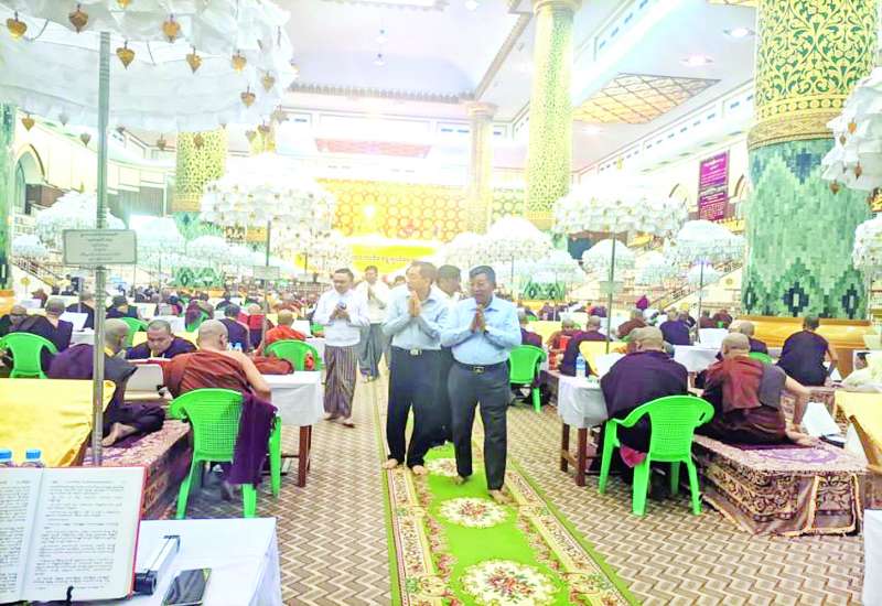 (၇၈)ကြိမ်မြောက် တိပိဋကဓရတိပိဋကကောဝိဒ ရွေးချယ်ရေးစာမေးပွဲကြီးကို ရန်ကုန်မြို့သီရိမင်္ဂလာကမ္ဘာအေးကုန်းမြေ မဟာပါသာဏလိုဏ်ဂူသိမ်တော်ကြီး၌ ကျင်းပလျက်ရှိရာ ယနေ့နံနက်တွင် စာမေးပွဲကျင်းပရာသို့ သာသနာရေးနှင့်ယဉ်ကျေးမှုဝန်ကြီးဌာန ပြည်ထောင်စုဝန်ကြီး ဦးတင်ဦးလွင်နှင့်ဇနီး၊ စွမ်းအင်ဝန်ကြီးဌာန ပြည်ထောင်စုဝန်ကြီး ဦးကိုကိုလွင်၊ စက်မှုဝန်ကြီးဌာန ပြည်ထောင်စုဝန်ကြီး ဒေါက်တာချာလီသန်း၊ သိပ္ပံနှင့်နည်းပညာဝန်ကြီးဌာန ပြည်ထောင်စုဝန်ကြီး ဒေါက်တာမျိုးသိန်းကျော်၊ ဆောက်လုပ်ရေးဝန်ကြီးဌာန ပြည်ထောင်စုဝန်ကြီးဦးမျိုးသန့်နှင့် တာဝန်ရှိသူများက လာရောက်ဖူးမြော် ကြည်ညိုကြသည်။