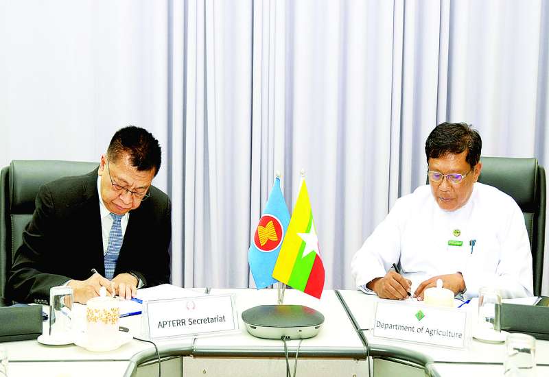 အာဆီယံ အပေါင်းသုံးအရေးပေါ် ဆန်အရန်ရိက္ခာ (APTERR) အစီအစဉ်-၃ (၂၀၂၅)အရ ငလျင်ဘေးသင့် ပြည်သူများအတွက် ထပ်မံလှူဒါန်းသည့် ကိုရီးယားသမ္မတနိုင်ငံမှ ဆန် တန် ၃၀၀၀ ၊ တရုတ်ပြည်သူ့သမ္မတနိုင်ငံမှ ဆန် ၂၇၅ တန်နှင့် ပုံမှန်အစီအစဉ်ဖြင့် လှူဒါန်းခြင်းအစီအစဉ်ဖြင့် ကိုရီးယားသမ္မတနိုင်ငံမှ ဆန်တန် ၂၀၀၀၊ တရုတ်ပြည်သူ့သမ္မတနိုင်ငံမှ ဆန် ၃၇၅ တန်တို့နှင့်စပ်လျဉ်းသည့် သဘောတူညီမှု စာချွန်လွှာ (Memorandum of Agreement -MoA) လေးစောင်ကို ယနေ့လက်မှတ်ရေးထိုးသည်။