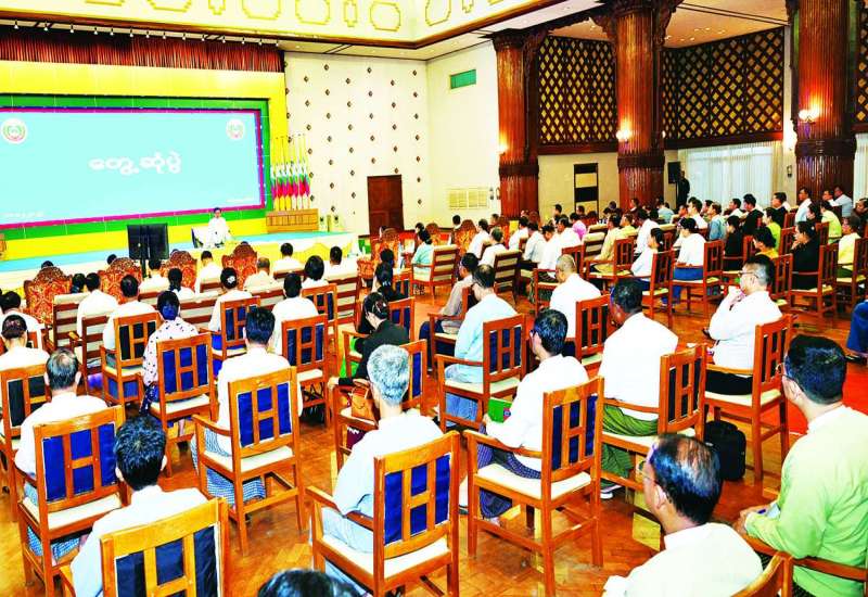 ပြည်ထောင်စုသမ္မတ မြန်မာနိုင်ငံတော်ယာယီသမ္မတ နိုင်ငံတော်လုံခြုံရေးနှင့်အေးချမ်းသာယာရေးကော်မရှင်ဥက္ကဋ္ဌ ဗိုလ်ချုပ်မှူးကြီး မင်းအောင်လှိုင်သည် ယနေ့မွန်းလွဲပိုင်းတွင် ရန်ကုန်တိုင်းဒေသကြီးအစိုးရအဖွဲ့ဝင်များ၊ တိုင်းဒေသကြီးနှင့် ခရိုင်အဆင့်ဌာနဆိုင်ရာ တာဝန်ရှိသူများအား တိုင်းဒေသကြီးအစိုးရအဖွဲ့ရုံး မင်္ဂလာခန်းမ၌တွေ့ဆုံ၍ ဒေသဖွံ့ဖြိုး တိုးတက်ရေးဆိုင်ရာများ ဆွေးနွေးပြောကြားသည်။