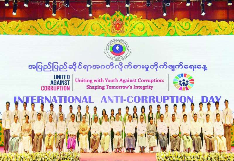 အပြည်ပြည်ဆိုင်ရာ အဂတိလိုက်စားမှုတိုက်ဖျက်ရေးနေ့ အထိမ်းအမှတ်အခမ်းအနားကို ယနေ့နံနက်ပိုင်းတွင် နေပြည်တော်ရှိ မြန်မာအပြည်ပြည်ဆိုင်ရာ ကွန်ဗင်းရှင်းဗဟိုဌာန-၁ ၌ ကျင်းပရာ အမျိုးသားကာကွယ်ရေးနှင့်လုံခြုံရေးကောင်စီရုံး အမှုဆောင်ချုပ် ဦးအောင်လင်းဒွေး တက်ရောက်အမှာစကား ပြောကြားသည်။