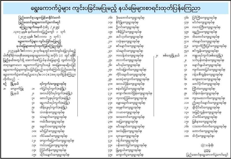 ရွေးကောက်ပွဲများ ကျင်းပခြင်းမပြုမည့် နယ်မြေများ စာရင်းထုတ်ပြန်ကြေညာ