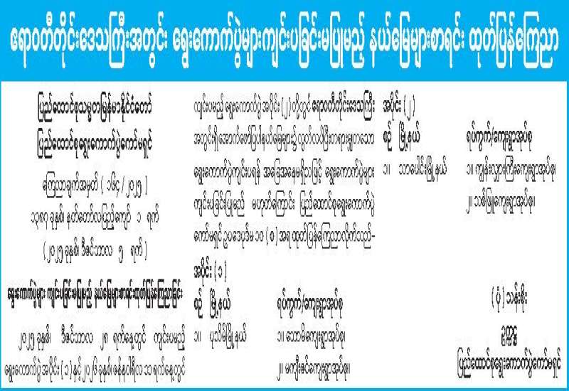 ရန်ကုန်မြို့နှင့် မန္တလေးမြို့အတွက် ရည်ညွှန်းလက်ကားဈေးနှုန်းများနှင့် ပြည်ထောင်စုနယ်မြေ နေပြည်တော်၊ တိုင်းဒေသကြီး/ပြည်နယ် မြို့တော်များအတွက် ရည်ညွှန်းလက်လီဈေးနှုန်းများ