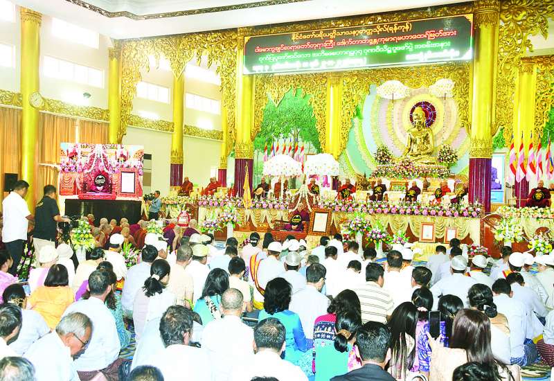 ပြည်ထောင်စုသမ္မတမြန်မာနိုင်ငံ ကုန်သည်များနှင့် စက်မှုလက်မှုလုပ်ငန်းရှင်များ အသင်းချုပ် (၃၄) ကြိမ်မြောက် နှစ်ပတ်လည်အသင်းသားစုံညီအစည်းအဝေးကို ယနေ့မွန်းလွဲပိုင်းတွင် ရန်ကုန်မြို့ရှိ အမျိုးသားကဇတ်ရုံ၌ ကျင်းပပြုလုပ်ရာ ပြည်ထောင်စုသမ္မတမြန်မာနိုင်ငံတော် ယာယီသမ္မတနိုင်ငံတော်လုံခြုံရေးနှင့် အေးချမ်းသာယာရေးကော်မရှင်ဥက္ကဋ္ဌ ဗိုလ်ချုပ်မှူးကြီး မင်းအောင်လှိုင် တက်ရောက်အမှာစကားပြောကြားသည်။