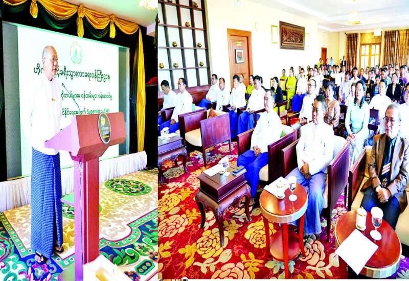 ဟိုတယ်နှင့်ခရီးသွားလုပ်ငန်းကဏ္ဍရှိ ဝန်ထမ်းများ စွမ်းဆောင်ရည်မြင့်မားပြီး ခရီးသွားလုပ်ငန်းကဏ္ဍ ရေရှည်ဖွံ့ဖြိုးတိုးတက်စေရေးနှင့် ဟိုတယ်ဆိုင်ရာဝန်ဆောင်မှုလုပ်ငန်းများနှင့် ဆက်စပ်လုပ်ငန်းများ၌ ကျွမ်းကျင်လုပ်သားများပေါ်ထွက်လာစေရေး၊ လူ့စွမ်းအားအရင်းအမြစ်များ ဖွံ့ဖြိုးတိုးတက်လာစေရေးအတွက် ပြည်ထောင်စုနယ်မြေ နေပြည်တော်ရှိ ဟိုတယ်များမှ မန်နေဂျာ၊ ကြီးကြပ်ရေးမှူးဝန်ထမ်းများအတွက် ခေါင်းဆောင်မှုနှင့် ဝန်ဆောင်မှုစွမ်းရည်မြှင့်တင်ရေး သင်တန်းဖွင့်ပွဲ အခမ်းအနားကို ယနေ့နံနက်ပိုင်းတွင် နေပြည်တော် Aureum Palace ဟိုတယ်၌ ကျင်းပသည်။
