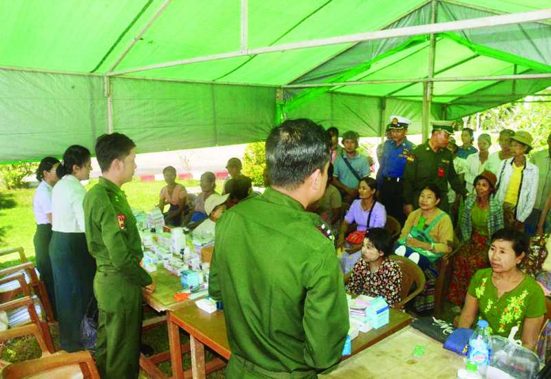 ရန်ကုန်တိုင်းဒေသကြီး ကိုကိုးကျွန်းမြို့နယ်နှင့် ဧရာဝတီတိုင်းဒေသကြီး၊ ဟိုင်းကြီးကျွန်းမြို့နယ်အတွင်းရှိ ကျေးရွာများနှင့်ပတ်ဝန်း ကျင်ကျေးရွာများမှ ဒေသခံပြည်သူများအား ကျန်းမာရေးစောင့်ရှောက်မှုလုပ်ငန်းများ ဆောင်ရွက်ပေးရန်အတွက် တပ်မတော်ပင်လယ်သွားဆေးရုံရေယာဉ် (သံလွင်) ဖြင့် ရောက်ရှိနေသည့် တပ်မတော်မှ ပါရဂူများ၊ ဆေးမှူးများနှင့် သူနာပြုများပါဝင်သော တပ်မတော်နယ်လှည့်အထူးကုဆေးအဖွဲ့သည် ယနေ့နံနက်ပိုင်းတွင် ဧရာဝတီတိုင်းဒေသကြီး ငပုတောမြို့နယ် ဟိုင်းကြီးကျွန်းမြို့နှင့် အနီးပတ်ဝန်းကျင်ကျေးရွာများရှိ ဒေသခံပြည်သူ ၄၆၅ ဦးအား နယ်မြေခံတပ်မတော်ဆေးရုံ၌ ကျန်းမာရေးစောင့်ရှောက်မှုလုပ်ငန်းများ ဆက်လက်ဆောင်ရွက်ပေးသည်။